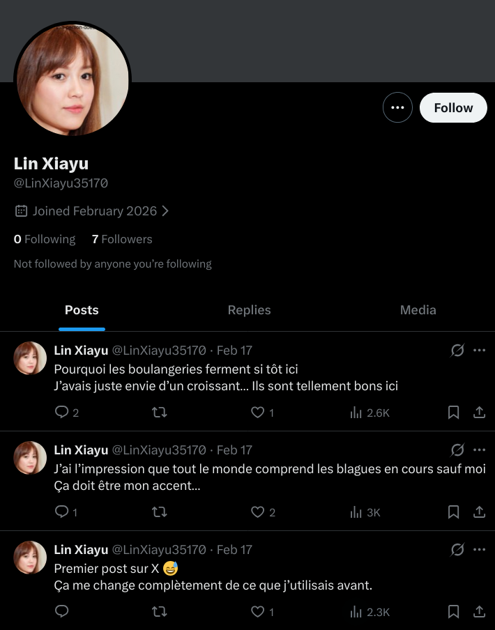 On the Twitter account we can find some tweets saying that she loves croissants — I can understand, I love them too, vive la France!